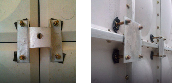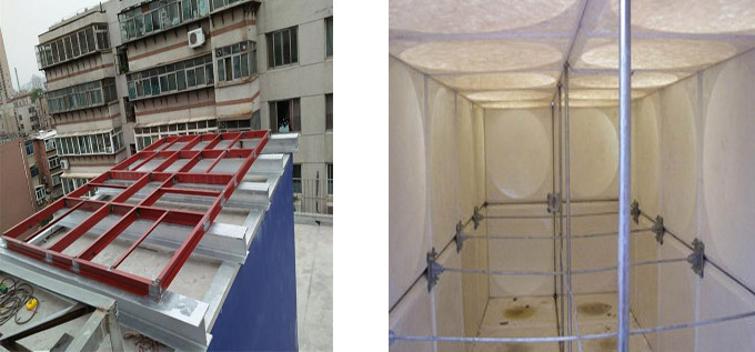 水箱基礎(chǔ)可采用混凝土條形梁,或工字鋼。水箱頂部對角設(shè)有透氣空氣過濾水箱內(nèi)部均使用拉筋。各管口法蘭均為1.0MPa標(biāo)準(zhǔn)法蘭。