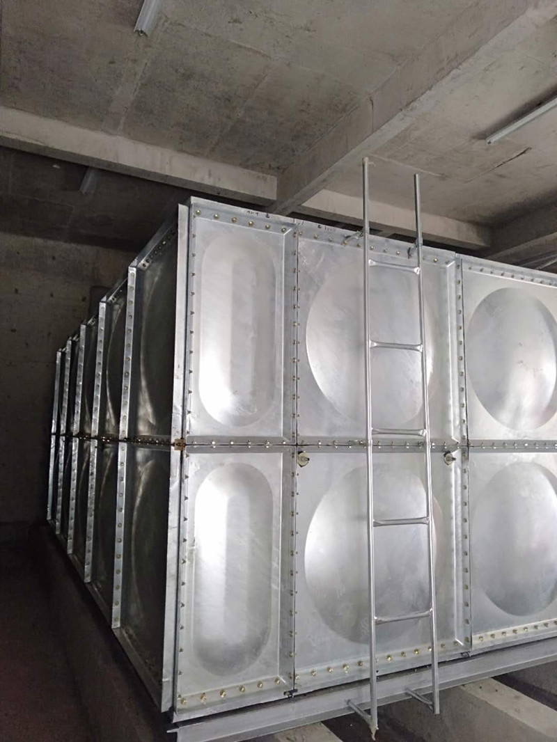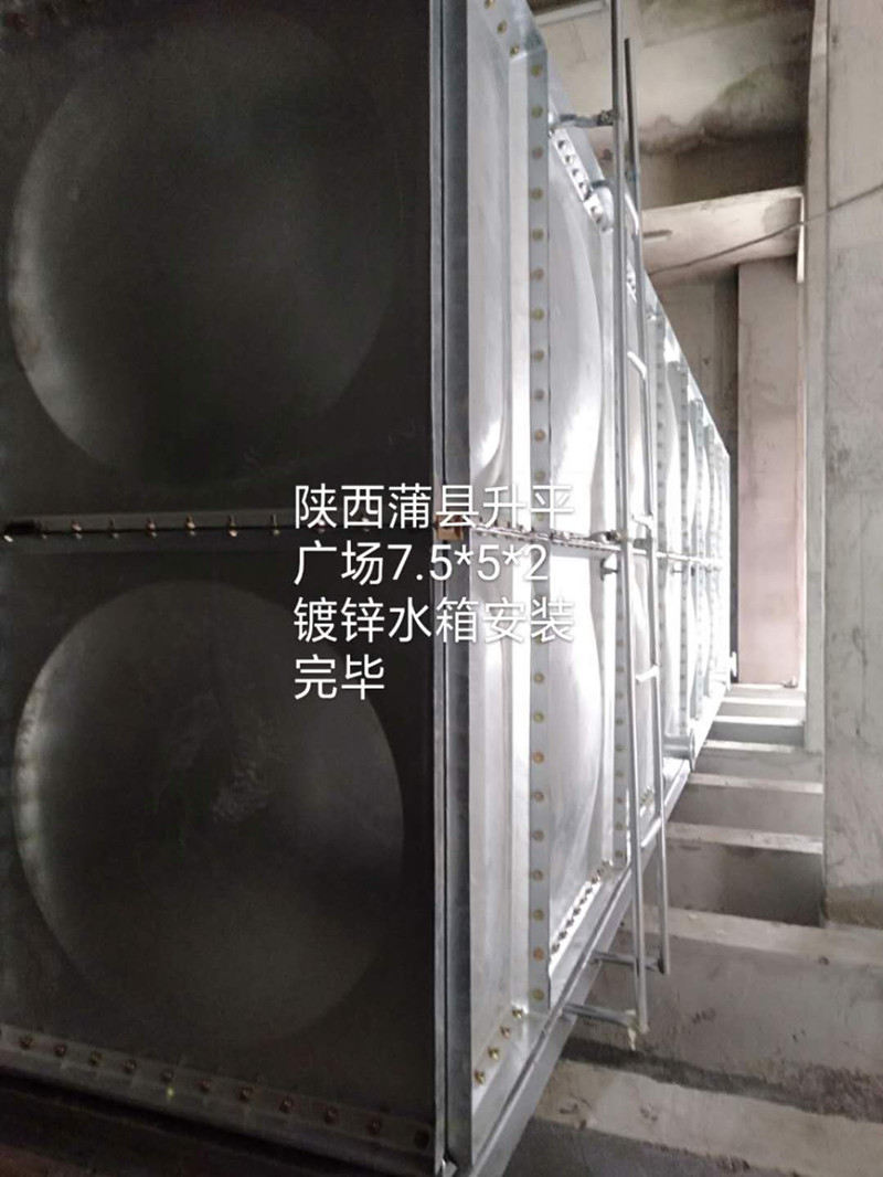 騰翔鍍鋅水箱主要采用優(yōu)質(zhì)的Q235鋼板沖壓而成,形成1000×1000、1000×500、500×500等標(biāo)準(zhǔn)板塊后經(jīng)熱浸鍍鋅處理后形成鍍鋅水箱板。優(yōu)點(diǎn)是:全螺栓連接,現(xiàn)場(chǎng)進(jìn)行組裝,組裝快捷方便,組裝時(shí)采用密封條密封,不易出現(xiàn)漏水及密封不嚴(yán)現(xiàn)象。水箱體內(nèi)特殊性拉桿結(jié)構(gòu),使力學(xué)性能更合理,高度可達(dá)到5米。鍍鋅水箱對(duì)安裝現(xiàn)場(chǎng)無(wú)特殊要求,無(wú)需吊裝設(shè)備,容積可滿足用戶要求。