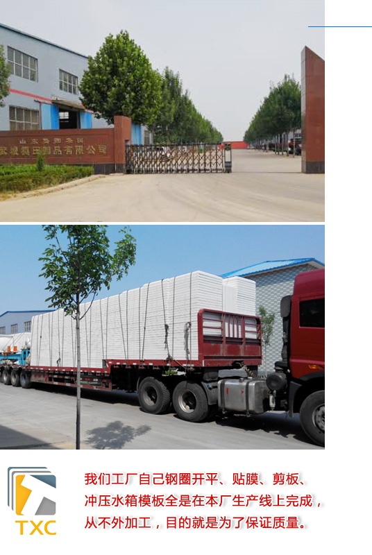 ![]() | 15年水箱工程設(shè)計、生產(chǎn)、安裝施工經(jīng)驗 山東省騰翔集團武城模壓制品有限公司(TXC),坐落于素有“九達天衢、神京門戶”美譽之稱的美麗德州,公司主營業(yè)務(wù)為水箱、通風(fēng)空調(diào)設(shè)備、精密玻璃鋼外殼產(chǎn)品。水箱產(chǎn)品包括:不銹鋼水箱、SMC玻璃鋼水箱、熱鍍鋅鋼板水箱、搪瓷鋼板水箱、噴塑鋼板水箱、BDF復(fù)合板地埋水箱及各種模壓配件、鍍鋅風(fēng)管、通風(fēng)設(shè)備等配套產(chǎn)品,同時可提供水箱的設(shè)計、生產(chǎn)、安裝一條龍服務(wù)及大型不銹鋼板、各種鐵板開平服務(wù)。精密玻璃鋼外殼產(chǎn)品包括:精密醫(yī)療器械外殼、工程機械外殼及汽車外殼等多種系列,并具備定制、生產(chǎn)、實驗、電氣元件裝配及檢測能力,其中SMC、玻璃鋼纏繞、雙面模RTM、真空袋RTM及玻璃鋼手糊(HLU)等多種生產(chǎn)工藝均達到合作認可,公司開展對銷貿(mào)易和轉(zhuǎn)口貿(mào)易,主要出口到歐美等國家,現(xiàn)已與東南歐洲等國家建立良好的長期貿(mào)易往來,已實現(xiàn)了出口有市場、銷售有網(wǎng)絡(luò)。本著用戶至上互惠互利、質(zhì)量好、以誠相待的原則和宗旨熱烈歡迎各界廠家和個人前來洽談貿(mào)易和各種形式的經(jīng)濟合作。 經(jīng)過公司員工的不懈努力,公司現(xiàn)已成為安全生產(chǎn)標(biāo)準(zhǔn)化三級企業(yè),武城玻璃鋼暨新材料企業(yè)聯(lián)盟會員,武城縣玻璃鋼復(fù)合材料協(xié)會會員,符合ISO9001:2015質(zhì)量管理體系認證,健康與安全認證,符合GB/T24001-2004idt ISO14001:2004環(huán)境管理體系認證,不銹鋼飲用水箱通過上海機械研究所檢驗,并通過了山東省國產(chǎn)涉及飲用水衛(wèi)生安全產(chǎn)品衛(wèi)生許可批件”,2013年固定資產(chǎn)投入先進企業(yè),2018年度轉(zhuǎn)型升級進步獎,2018年度在環(huán)保工作中獲得具有社會責(zé)任企業(yè)獎,2018年度全縣產(chǎn)業(yè)發(fā)展“雙創(chuàng)”示范企業(yè),2019年度納稅先進企業(yè),2013年成功制作地理式消防給水設(shè)備、箱泵一體化系列給水設(shè)備等等產(chǎn)品得到廣大客戶的好評,您的滿意是“騰翔”人永恒的追求!---科技創(chuàng)新,質(zhì)引未來。 |